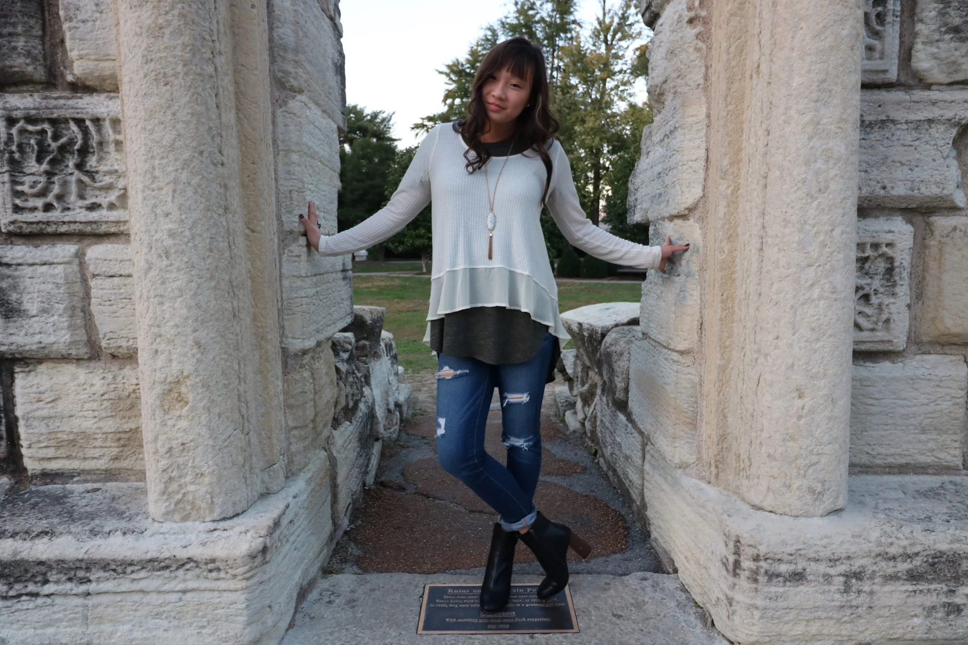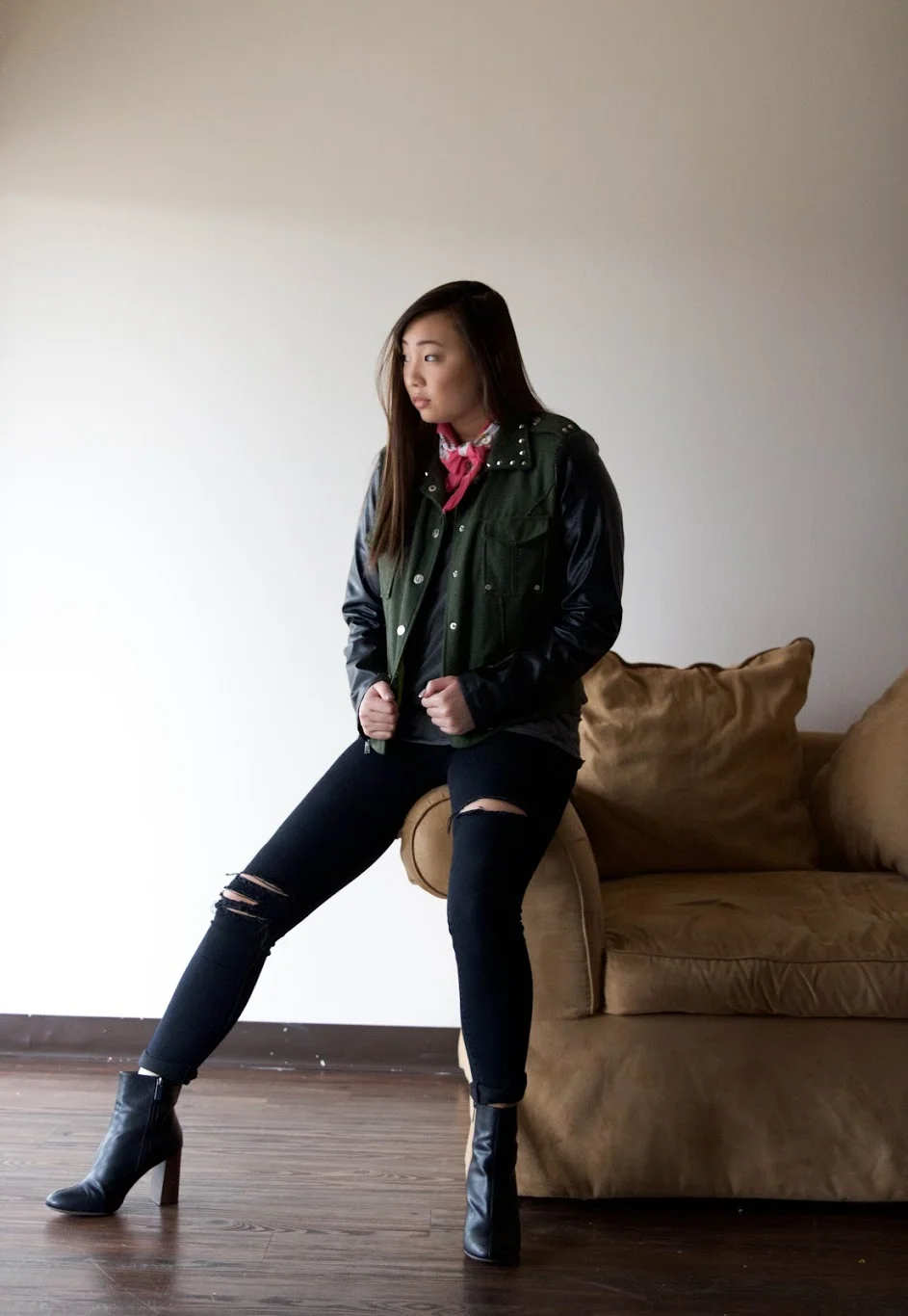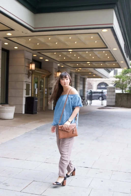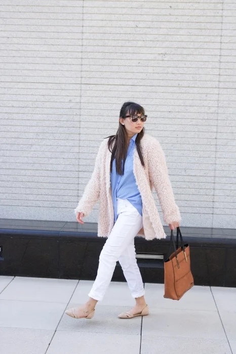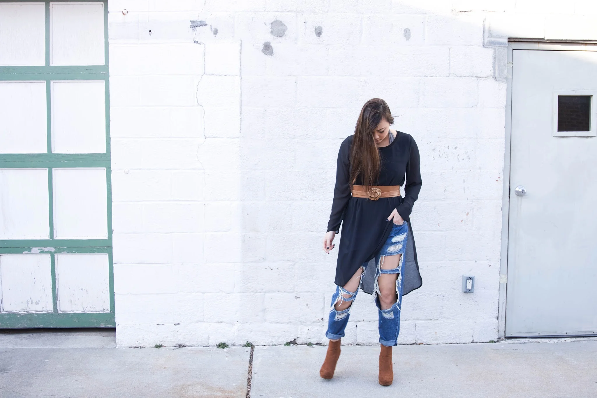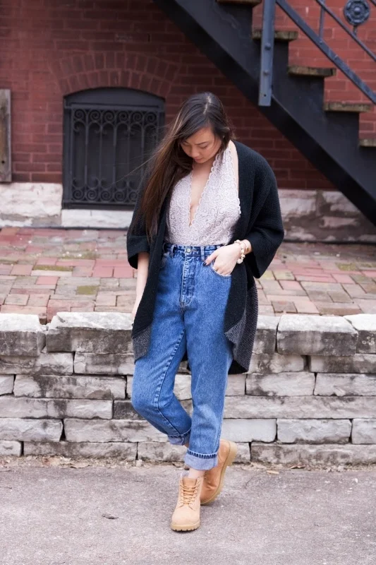 Every time I wear jeans, I roll the ends for a more polished and finished look. This especially applies if you're wearing booties. By rolling your jeans at the ankles twice, it can leave a sort of slimming-effect on your ankles. This will allow your pants to end neatly and keep your entire look appearing very professional. A simple adjustment--but it works like magic.