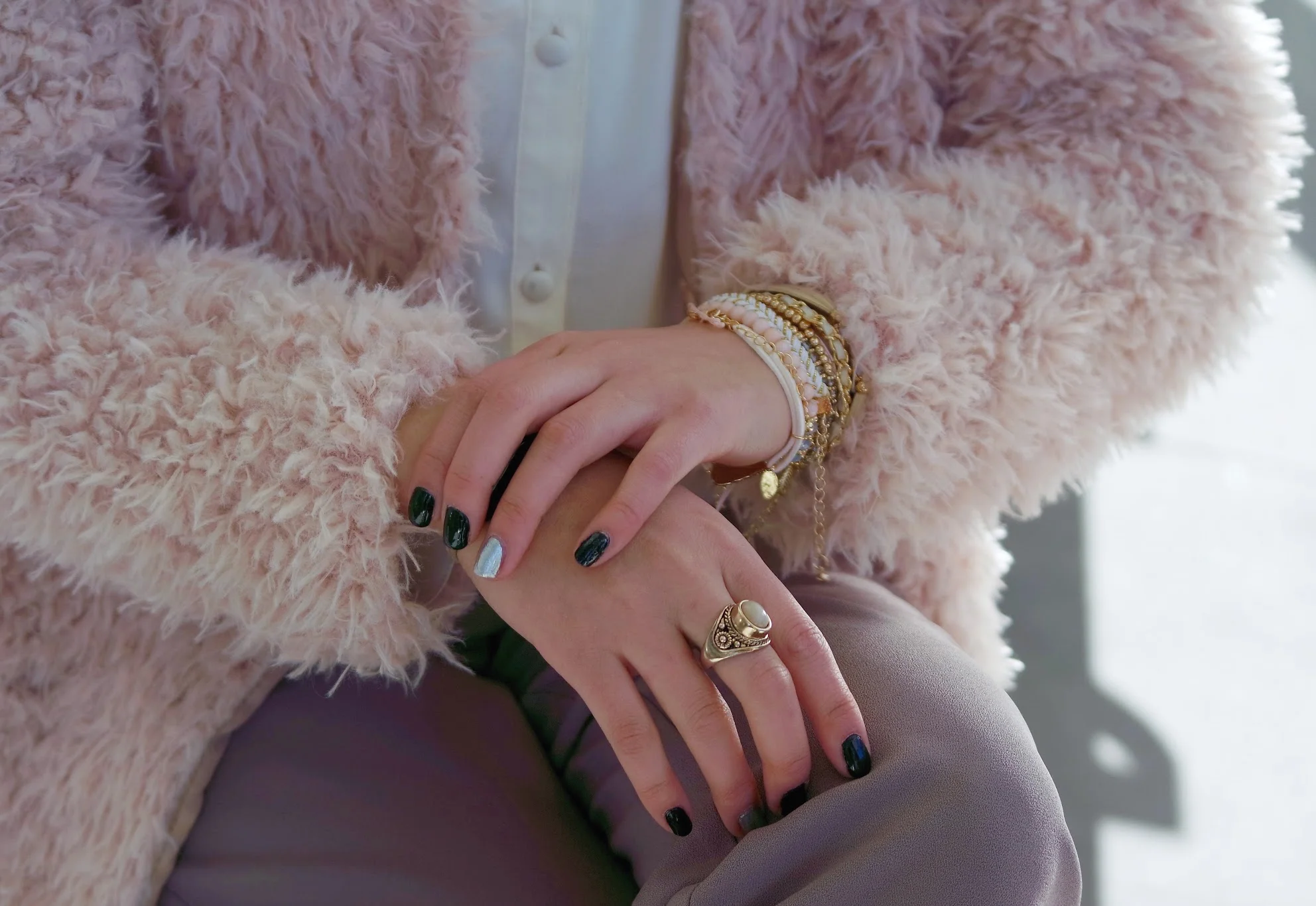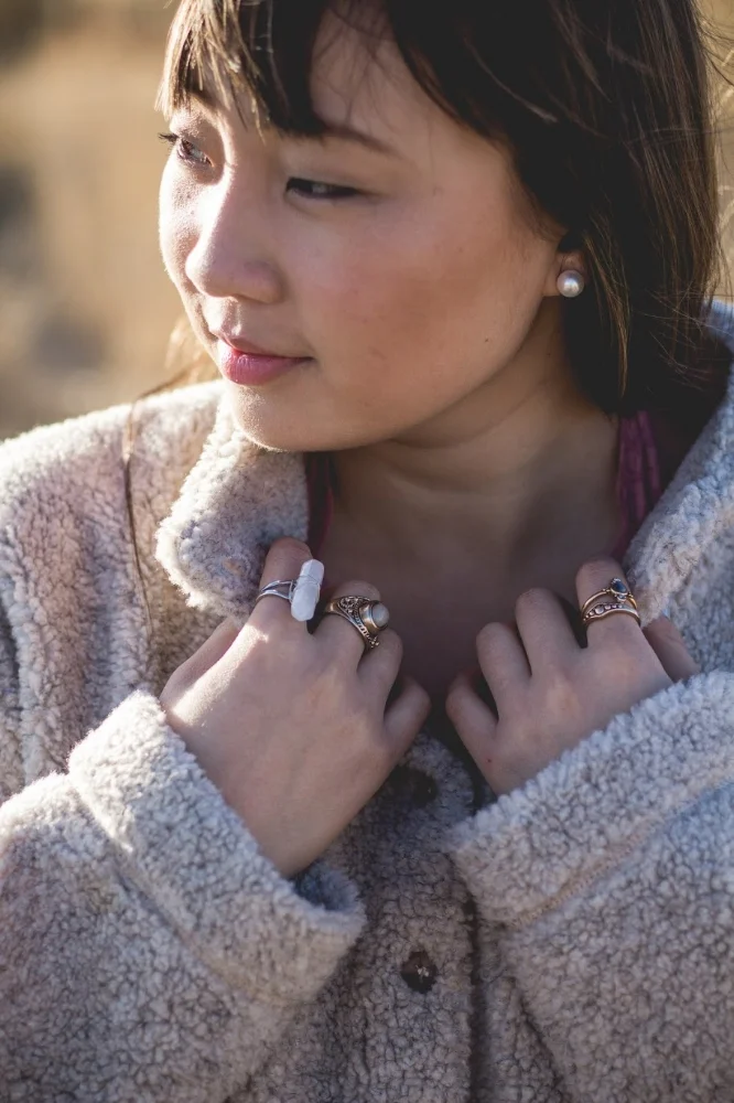 - Keep your metals consistent. This one is personal preference--I know some people don't mind mixing metals on jewelry, but I just have this thing about keeping gold pieces with gold, and silver with silver. Again--just personal preference! If you decide to mix, you can use this image down below as reference. I picked out this silver ring, because it has a marbly stone that coordinated with the other rings I selected.