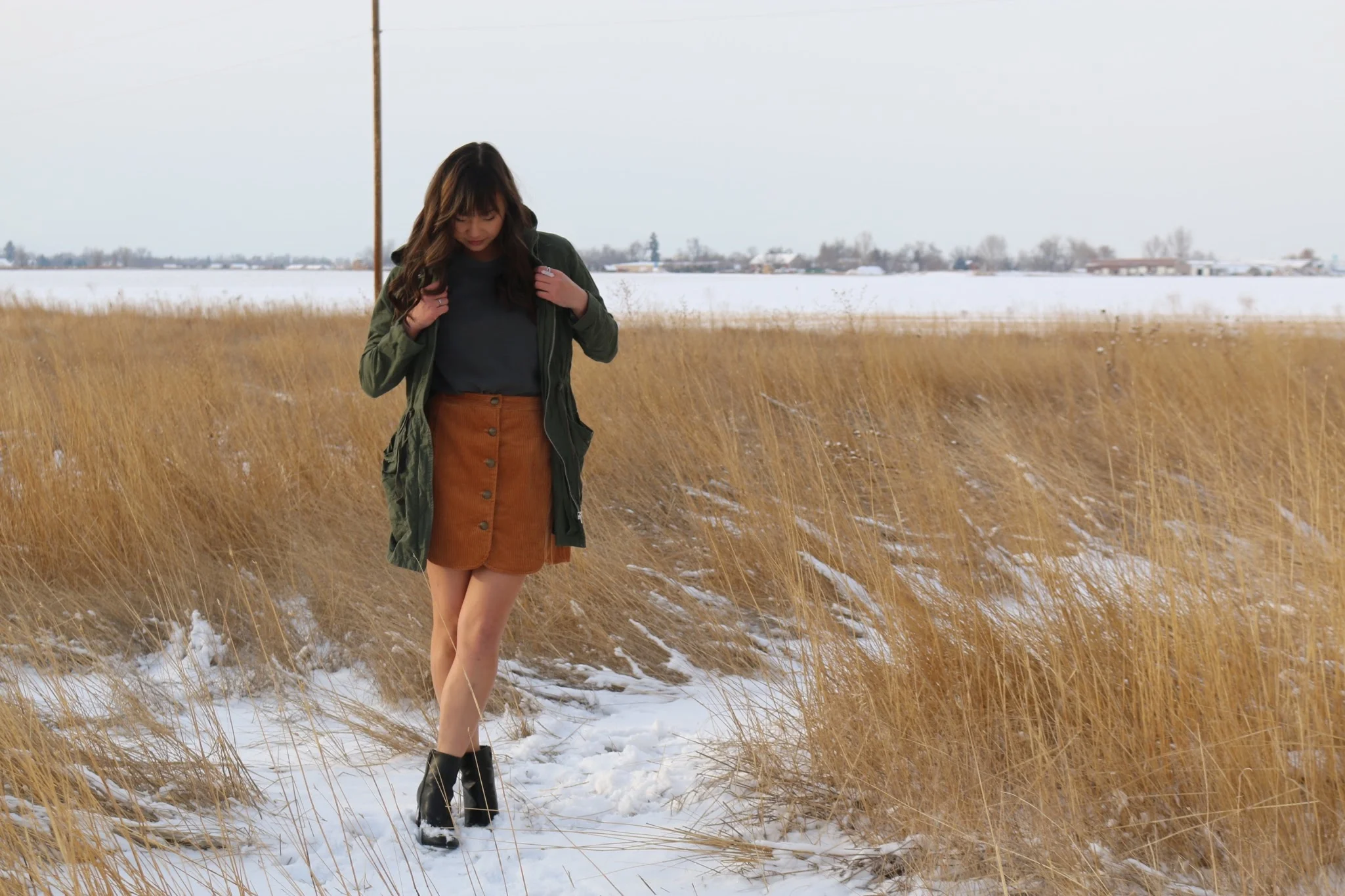 This one is my favorite and I use it almost every day. I love to wear baggier, looser shirts just because I think they're super comfy and practical. But they definitely can make me lose a lot of shape. A simple way of fixing this is by tucking in my shirt. If it's a skirt, I'll typically tuck the whole shirt in--front and back--depending on the shirt and skirt. If I'm wearing jeans, I'll just tuck in the front half, or in the case above, just a quarter of the shirt to add some definition and style.